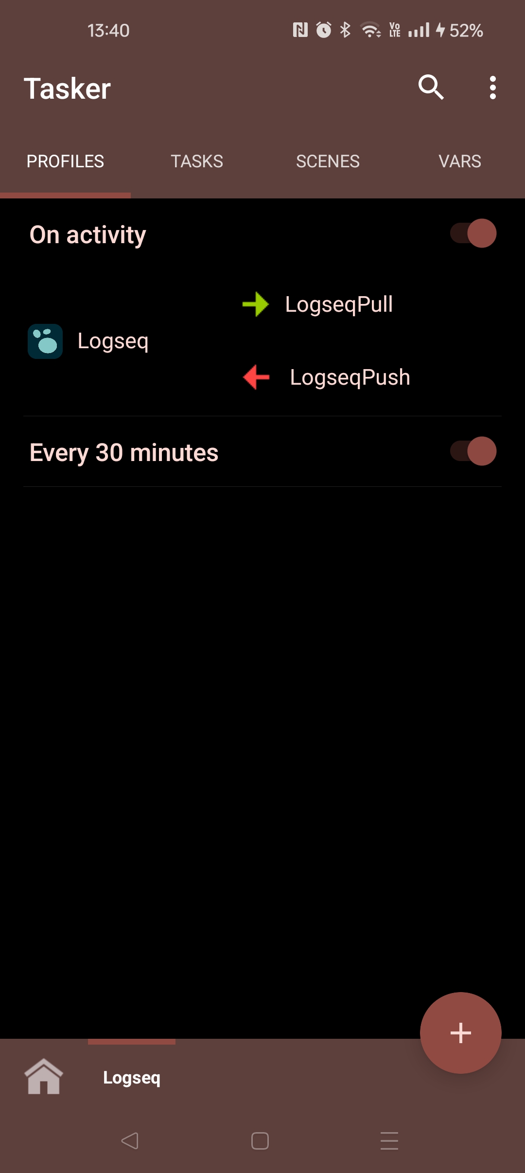 - Finally, profile Every 30m triggers LogseqPull every 30 minutes.